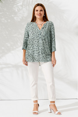 Блуза с рукавом ¾ и эффектным вырезом горловины имеет свободный крой, который обеспечит безупречную посадку по фигуре любого типа. Блузка женская из вискозы не раздражает кожу, пропускает воздух, отводит влагу.