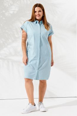Женское платье рубашка – комфортная одежда для повседневной носки. В нем вы будете безупречно выглядеть на работе, прогулке, встрече с друзьями. Платье на пуговицах скроено с сорочечным воротником и короткими рукавами. Длина модели – до колена. Платье большого размера сшито в прямом силуэте, с нагрудными вытачками, благодаря чему идеально садится по фигуре и придает ей изящность. Вы можете заказать женское платье миди из трикотажа для создания стильных аутфитов. Оно отлично будет сочетаться с обувью в спортивном стиле и на танкетке.