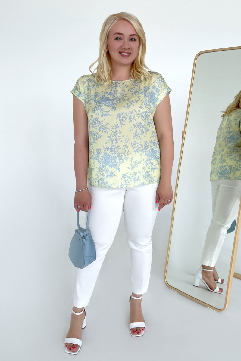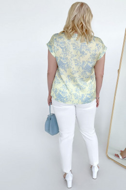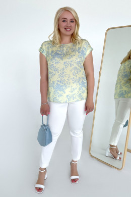 Летняя блузка со спущенным рукавом подарит вам комфорт жарким летом и поможем создавать эффектные образы. Трикотажная блузка с коротким рукавом буквально стоится по фигуре. Если у вас аппетитные формы, то блуза летняя женская – лучший выбор для вас. Свободный крой идеально скрывает огрехи фигуры, делая акцент на ее достоинствах. Приятная расцветка с растительным принтом позволяет удачно комбинировать изделие с однотонным низом. Модная женская блуза может использоваться в повседневных, деловых и торжественных образах. Вы можете заказать летнюю женскую блузу в размере от 50 до 58.
