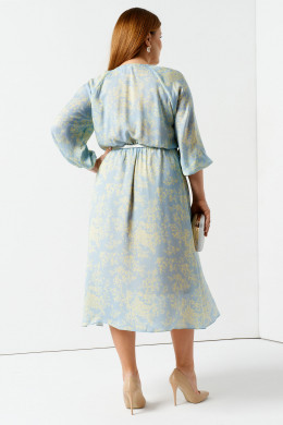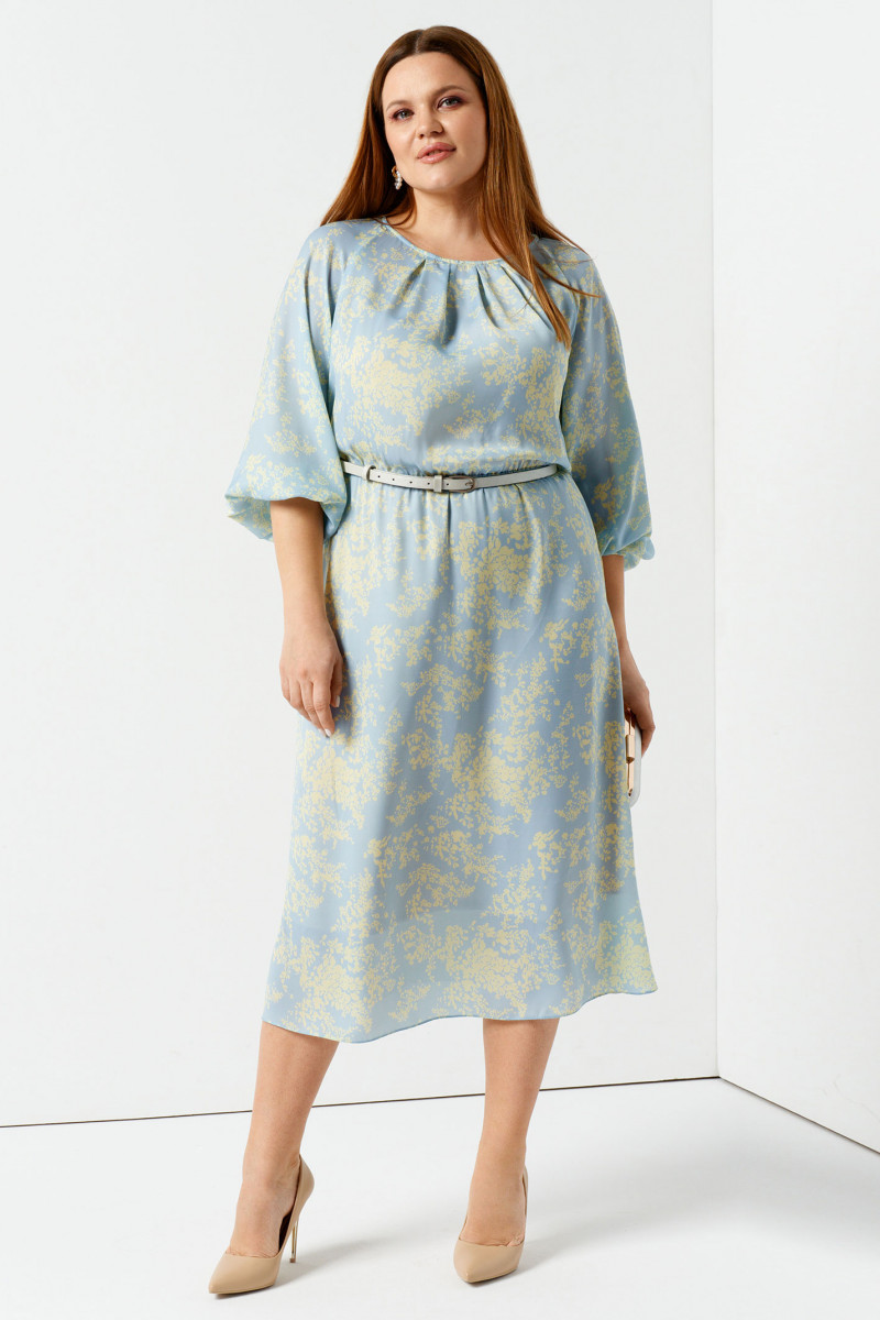 Легко и воздушное летнее платье миди пополнит ваш гардероб и поможет создать изысканный образ. Платье выполнено из вискозы с круглым выкатом горловины имеет мелкие защиты, которые как лучи солнца расходятся по зоне декольте. Ткань струится и ненавязчиво подчеркивает все достоинства женской фигуры. Платье длины миди с рукавами 3 четверти дополнено тонким поясом, формирующим линию талии. Вы можете купить женское платье стандартных и больших размеров для свидания, торжественных мероприятий, повседневной носки. Нежно-голубая расцветка превосходно сочетается с приглушенным растительным принтом