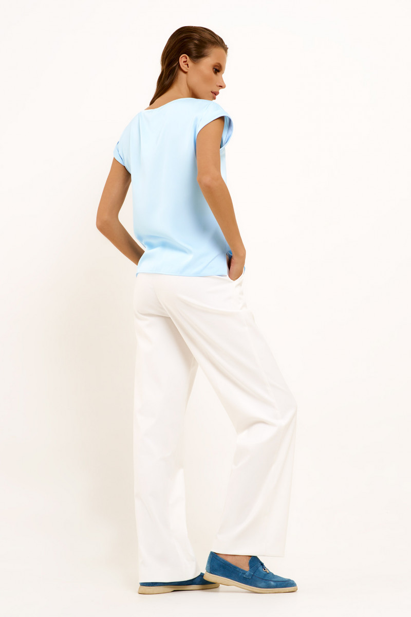 Элегантная базовая блузка - неотъемлемая вещь офисного гардероба, которая пригодна для повседневной носки. Расцветка позволяет сочетать блузку с классическими черными или яркими брюками, джинсами и юбками. Блузка женская с коротким рукавом выглядит изящно благодаря мягкой ткани с характерным блеском. Она изготовлена из полиэстера и эластана - износоустойчивой и приятной на ощупь ткани, которая легко тянется и хорошо пропускает воздух. Блузка с коротким рукавом, вырезом горловины лодочка и аккуратно обработанным низом выполнена в прямом фасоне. Блузка женская в офис имеет неформальный вид, в отличие от традиционной одежды в деловом стиле. Проймы рукавов украшены отложными манжетами. Лаконичный дизайн позволяет носить различные аксессуары, жакеты и пиджаки, тем самым меняя повседневные образы. Блузка классическая женская представлена в базовых и ярких расцветках. Элегантная блузка - универсальная вещь, которую можно купить в качестве дополнения базового гардероба.