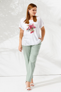 Женская блузка с принтом легко станет акцентной деталью созданного вами летнего образа. Она превосходно комбинируется в самых смелых сетах с брюками, джинсами, юбками, шортами. Модель пошита из приятного на ощупь хлопкового трикотажа, максимально пропускающего воздух к телу и обеспечивающего комфортные ощущения. Летняя блузка-футболка женская прямого кроя спереди украшена по центру ярким флористическим рисунком с надписью. Удлиненное изделие с коротким рукавом дополнено нешироким отворотом. Вырез горловины – крупный, круглый. Предлагаем вам купить красивые женскую футболку больших размеров по приемлемой стоимости.
