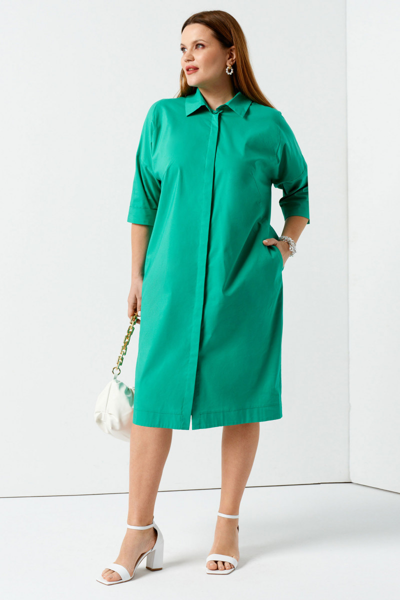 Хлопковое летнее платье дополнит летний гардероб и подарит вам комфорт. Прямой силуэт, пуговицы по всей длине, прикрытые декоративной планкой, отложной воротник, рукав ¾ - основные характеристики изделия. Платье рубашка для полных женщин виртуозно корректирует фигуру, подчеркивая достоинства. Летнее платье рубашка будет уместна на прогулке, встрече с подругами, деловой встрече. Вы можете выбрать подходящий размер для себя из предложенных и купить платье женское в ярком зеленом оттенке.