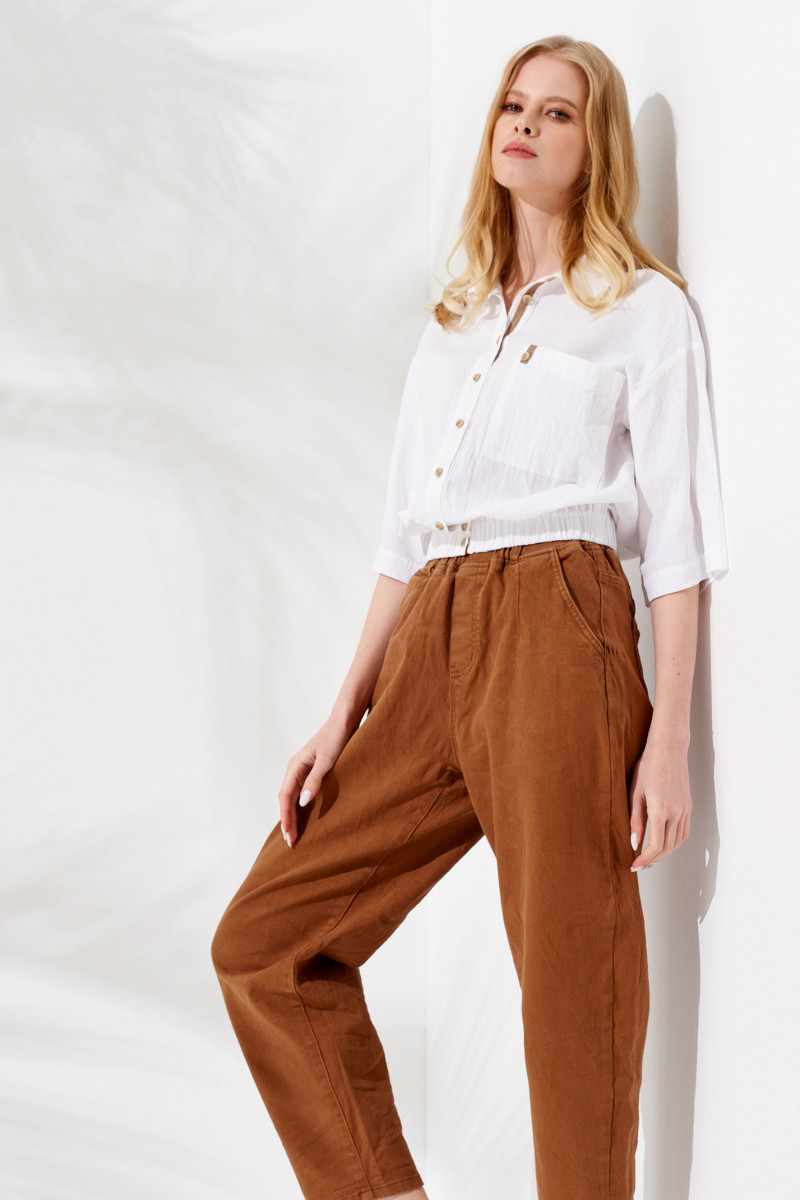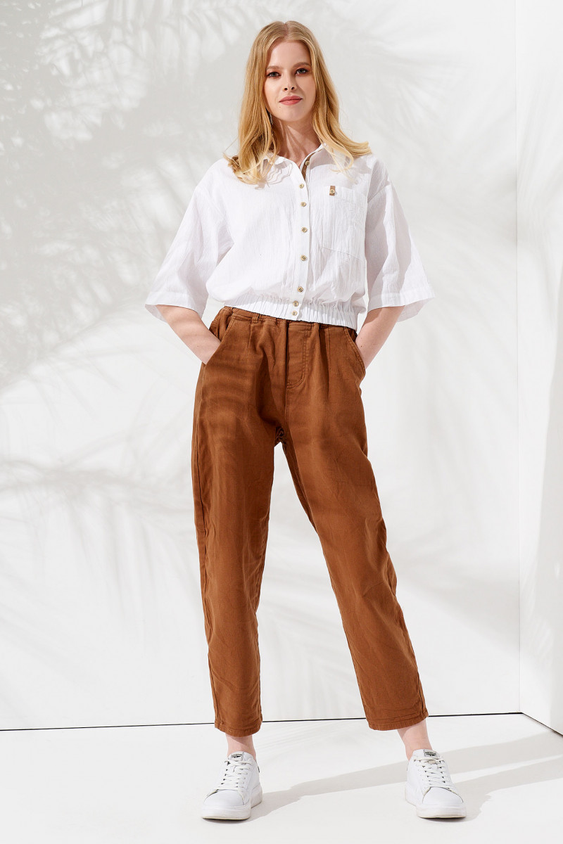 Молодежная блузка пошита из натурального хлопка. Материал не раздражает кожу, поэтому незаменим для носки в жаркий летний день. Хлопковая женская блузка хорошо отстирывается от загрязнений в машинке, легко гладится, не теряет цвет и форму.