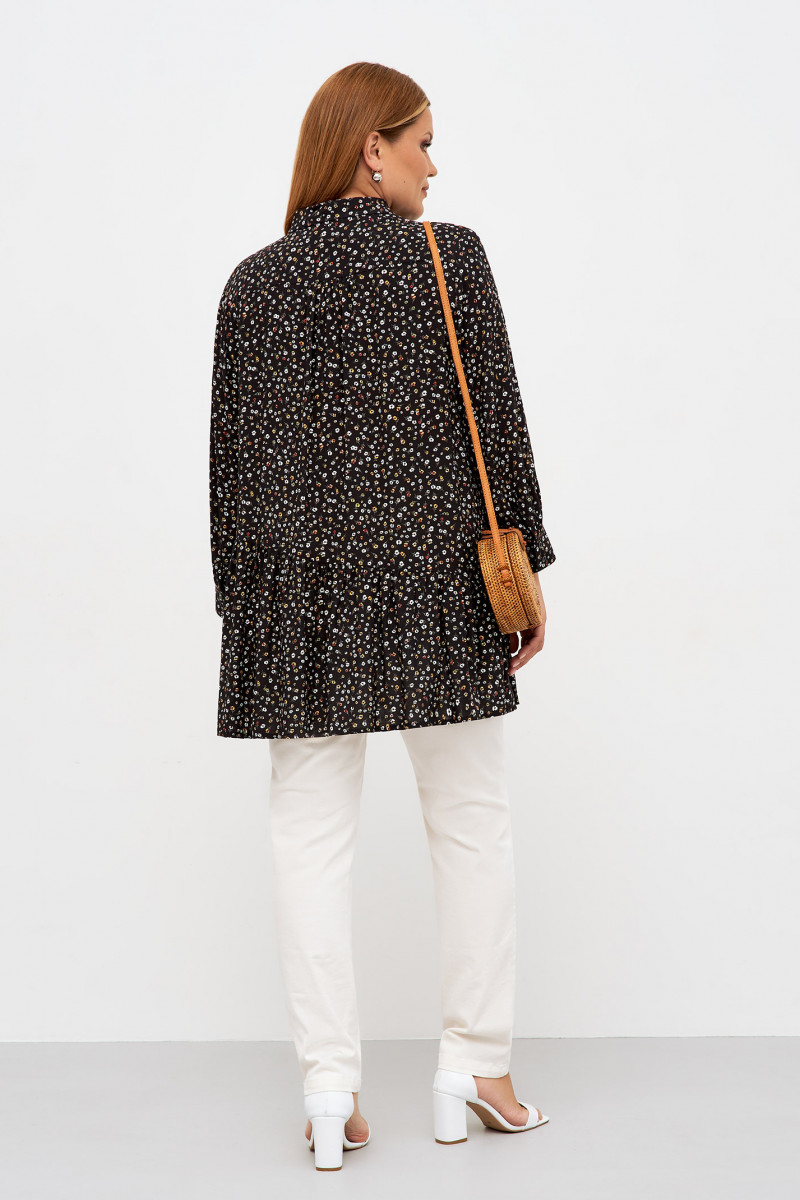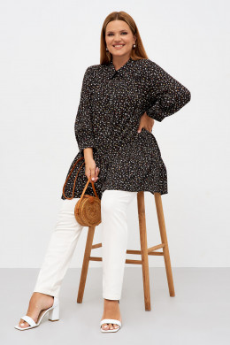 Нарядная женская блузка подойдет для пополнения летнего гардероба. Она подойдет для повседневной носки и поможет создать торжественный образ. Блузка-рубашка на пуговицах с отложным воротником и длинным рукавом хорошо сочетается с брюками и джинсами. Трикотажная блузка тонкая и мягкая, хорошо садится по фигуре, дарит комфорт в жаркую погоду. Она свободная, хорошо пропускает воздух, отсутствует парниковый эффект. Вы можете заказать блузку большого размера от 50 до 58 в приятной молочной расцветке с мелким принтом.