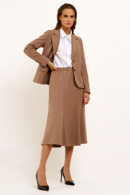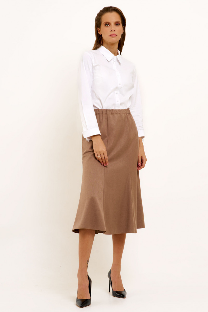 Юбка из поливискозной ткани для повседневной носки. Юбка длиной до середины голени, расклешающаяся к низу. Пояс юбки на резинке.Застежка на потайную молнию в боковом шве. Юбка на подкладке.