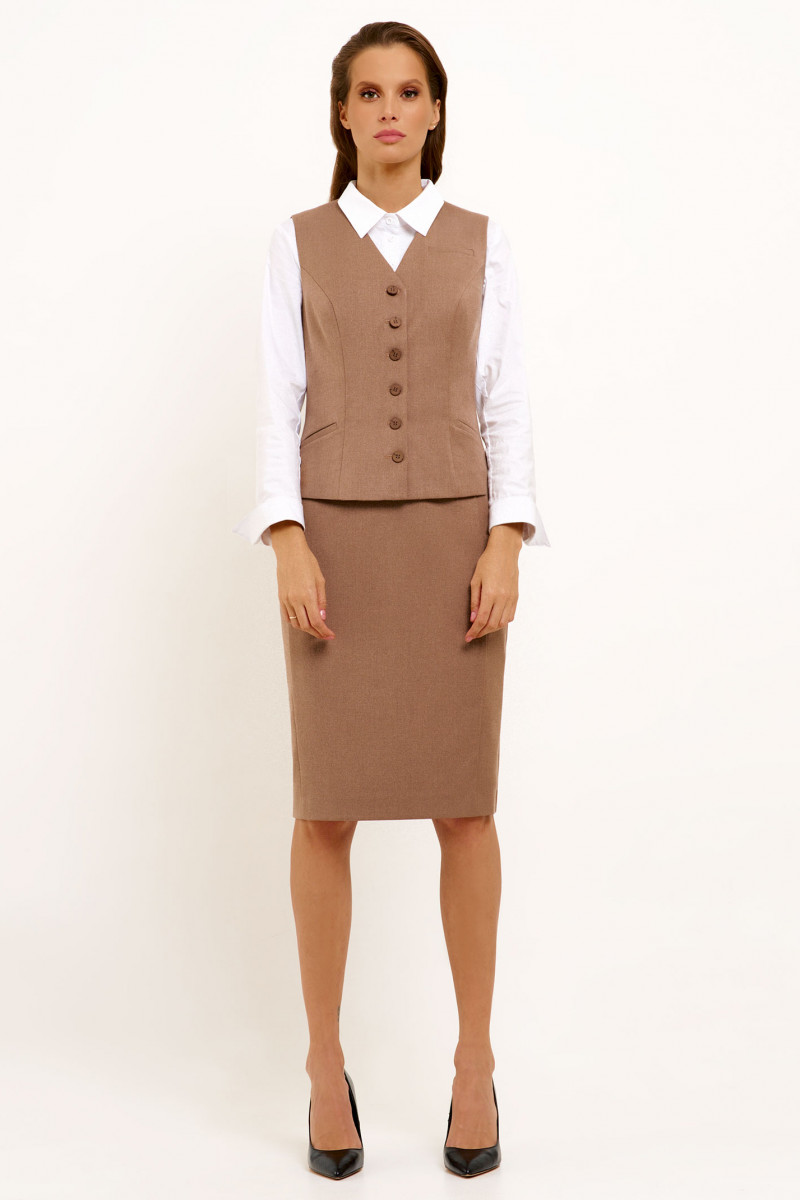 Юбка женская из поливискозной ткани для повседневной носки. Юбка полуприлегающего силуэта длиной до колена. Средний шов спинки заканчивается шлицей. Застежка на потайную молнию в среднем шве спинки.