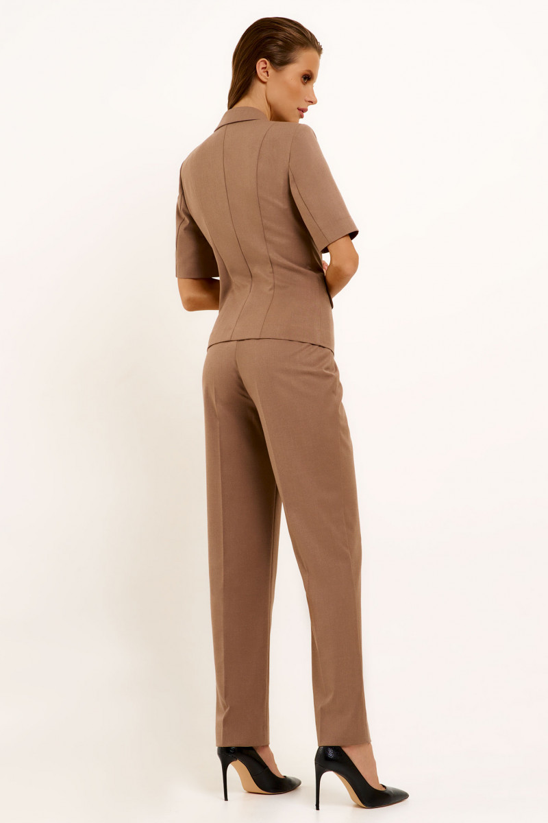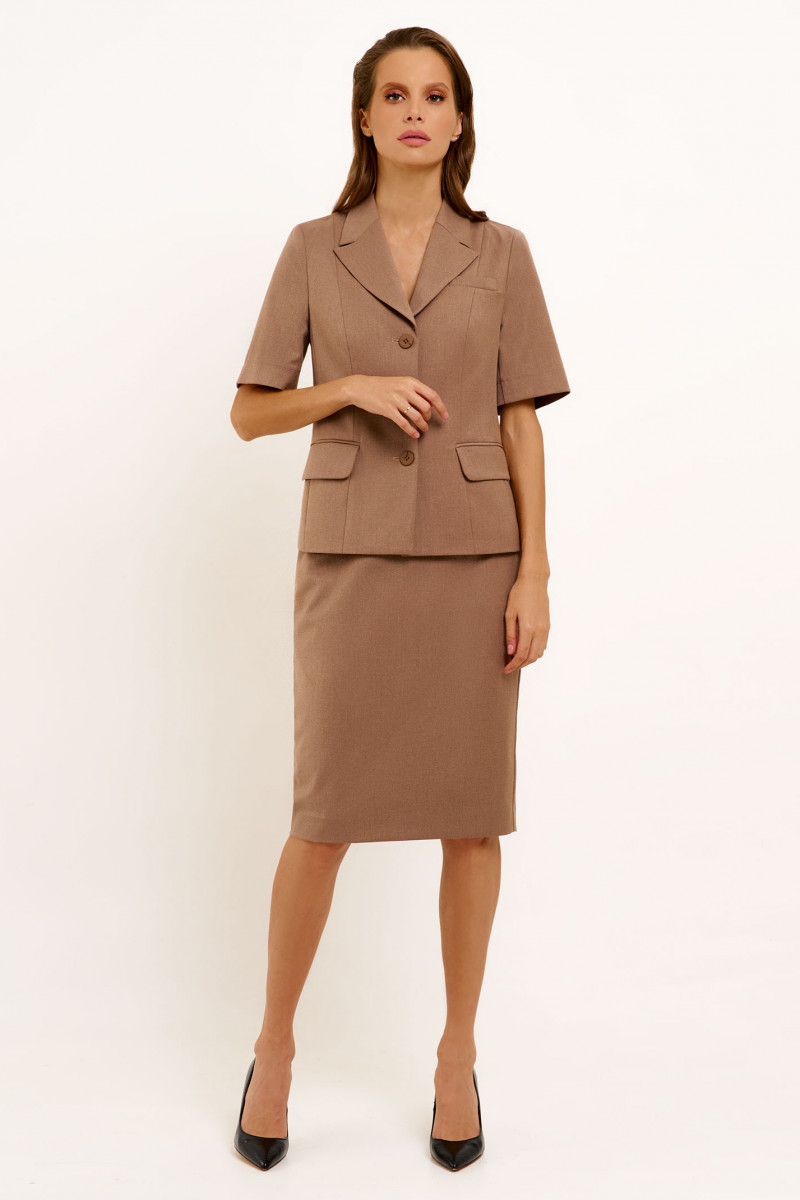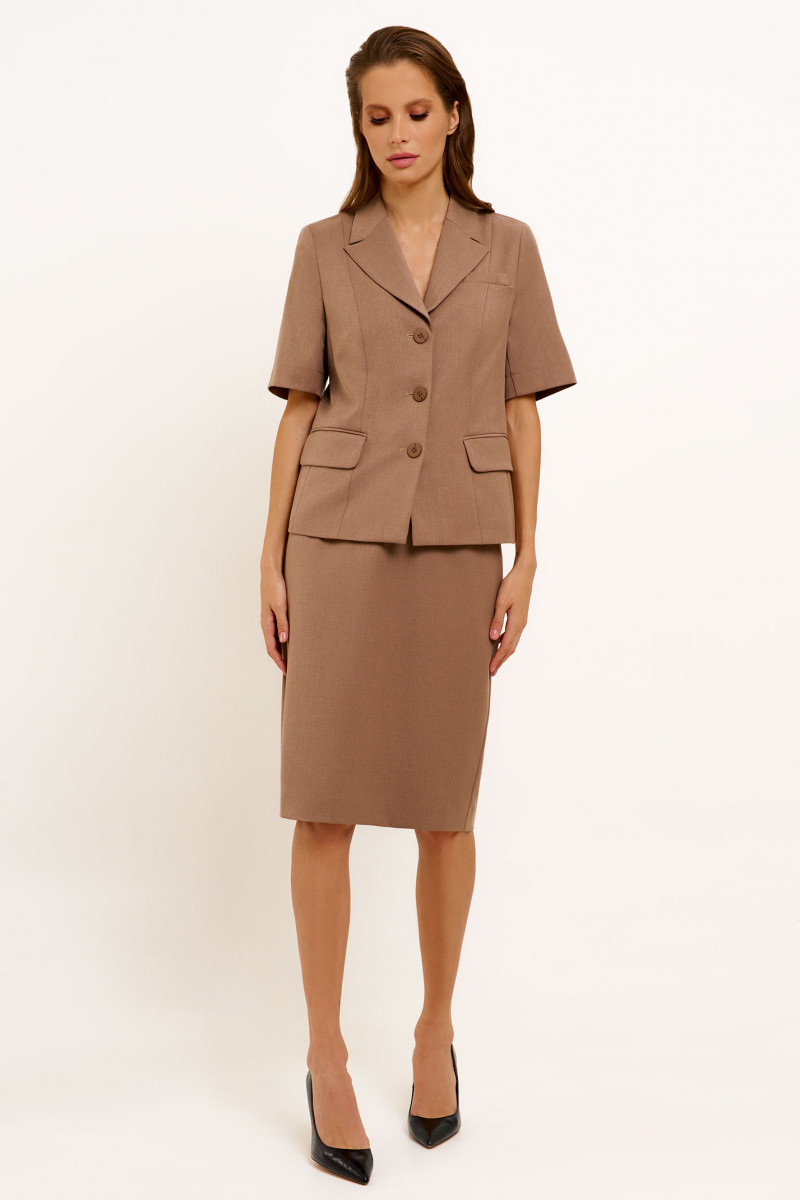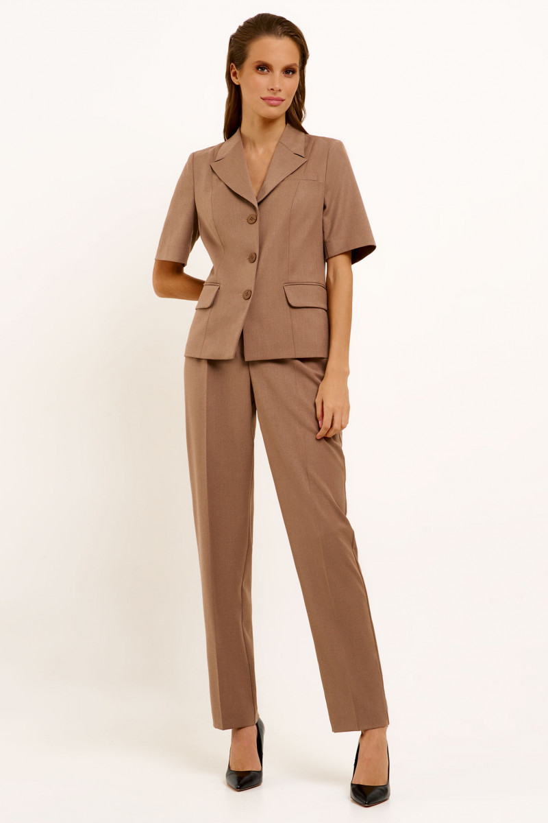 Жакет из поливискозной ткани для пвседневной носки. Изделие полуприлегающего силуэта с коротким втачным рукавом. Воротник отложной.ю по переду прорезные карманы с клапаном. Жакет однобортный классической длины.