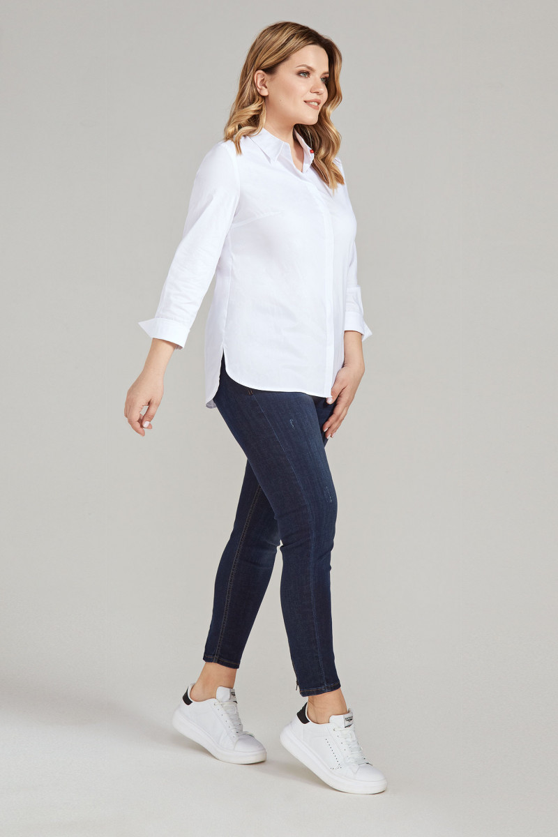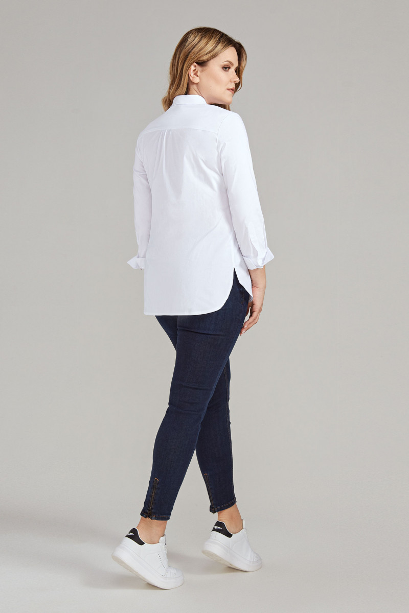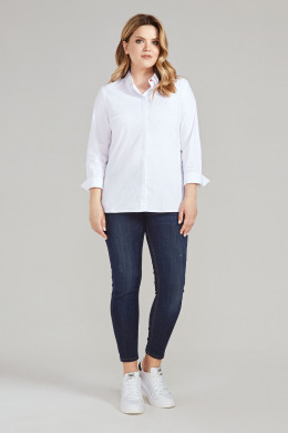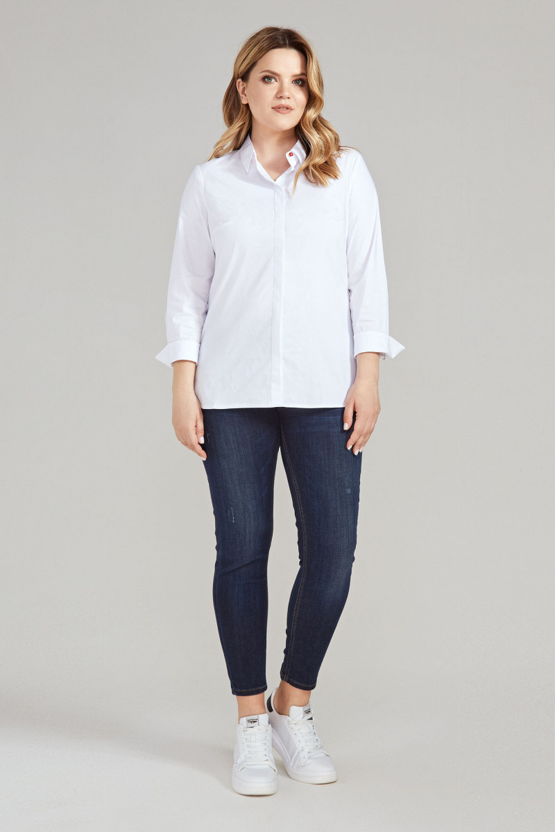 Стильная блузка из хлопковой ткани. В блузке сделан акцент на офисный стиль с нотками роскоши. Блузка полуприлегающего силуэта, с застежкой на потайную планку, с нагрудными вытачками по переду, на спинке кокетка, рукава удлиненные на манжете.