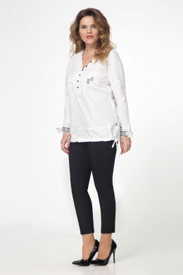 Стильная блузка из хлопковой ткани. Блузка создана для уверенной в себе девушки, которая знает как выглядеть неотразимо, и при этом чувствовать себя комфортно. Беспроигрышный вариант, как для офиса, так и для любого светского мероприятия. Блузка полуприлегающего силуэта, с V- образным вырезом горловины, по планке навесные петли пуговицы, опущенная линия плеча, деталь переда и спинки с кокетками, отрезная деталь по линии груди, на левой детали переда карман с шрифтовой вышивкой, по линии низа сборка на шнур из основной ткани. Рукава длинные, с манжетами и шрифтовой вышивкой.