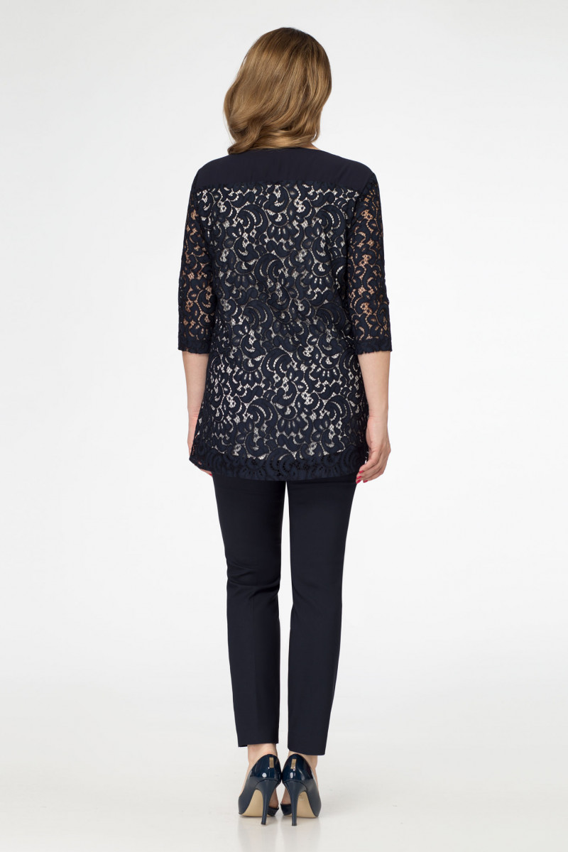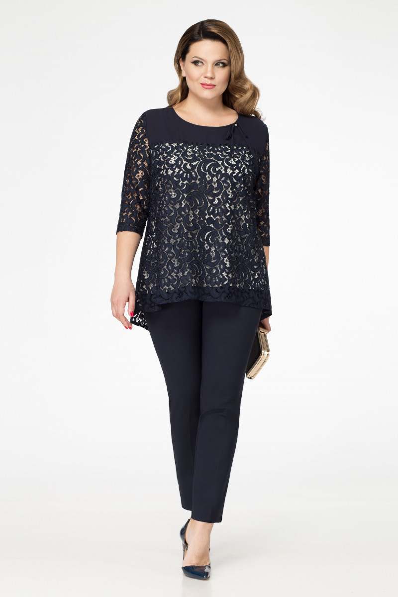 Нарядная блузка из кружева, воплощение элегантности, женственности, изящности. Блузка слегка свободного силуэта, длиной до линии бедер и перепадом спереди короче сзади длиннее, с круглым вырезом горловины, с кокеткой и нагрудными вытачками, Рукава втачные,3/4. Хороший вариант для выхода в свет.