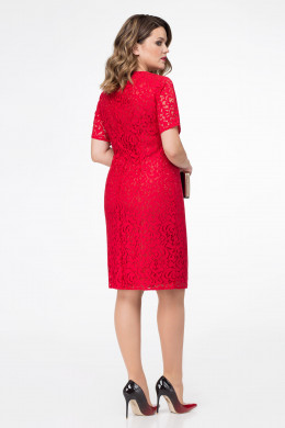 Следуя классическим канонам, не усложняя фасон платья и делая упор на сочетание кружевной ткани и женственный силуэт. Платье полуприлегающего силуэта, длиной до линии коленей. Деталь переда с круглым вырезом горловины, с талиевами вытачками, обеспечивающие отличную посадку по фигуре, рукава цельнокраеные со спущеной линией плеча. В комплект входит съемная брошь на булавке в виде цветка.