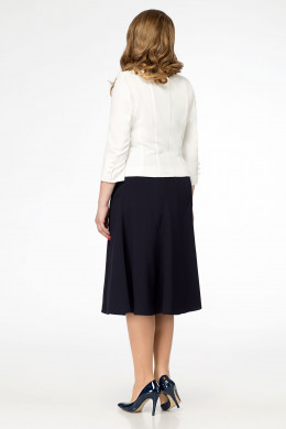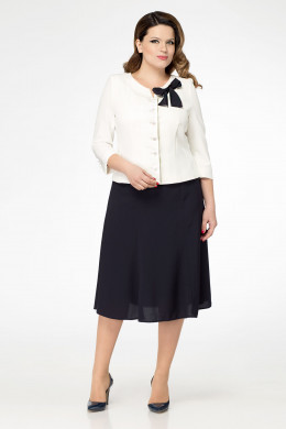 Нарядный женский костюм, который состоит из лаконичного жакета и легкой воздушной юбки из шифона. Жакет полуприлегающего силуэта, с центральной застежкой на петли и пуговицы. По горловине жакет дополняет декоративный бант. Юбка расширенного силуэта, состоит из шести клиньев. Верхняя часть юбки на широкой обтачке. Юбка на подкладки. Отличный нарядный костюм для торжественных мероприятий.