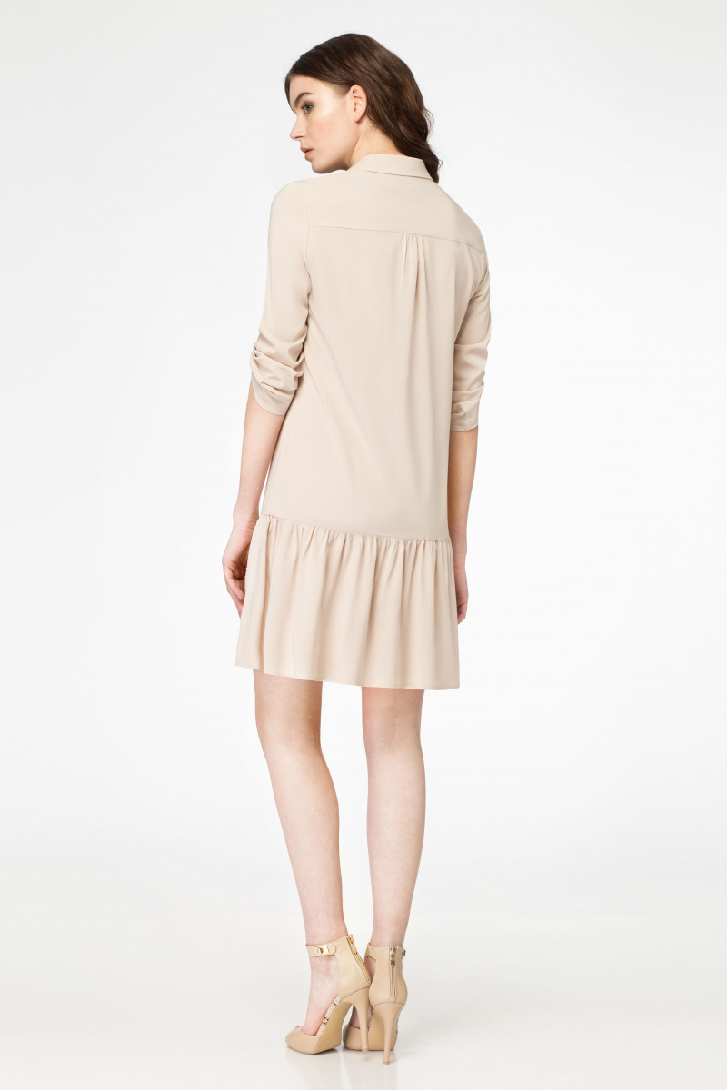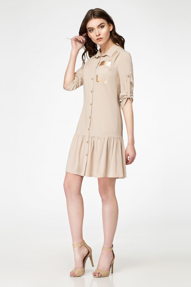 Модным трендом в одежде стали птатья-рубашки, которые одновременно воплотили в себе строгость и женственность. Платье из вискозы свободного силуэта, с центральной застежкой на петли пуговицы, с кокетками и сборкой от них, с накладным карманом и вышивкой пайетками, с притачной баской со сборкой, по линии бедер. Спинка с кокеткой и баской. Рукава втачные, длиной 3/4, с притачными манжетами и патами. Шикарный образ , как по случаю так и без него.