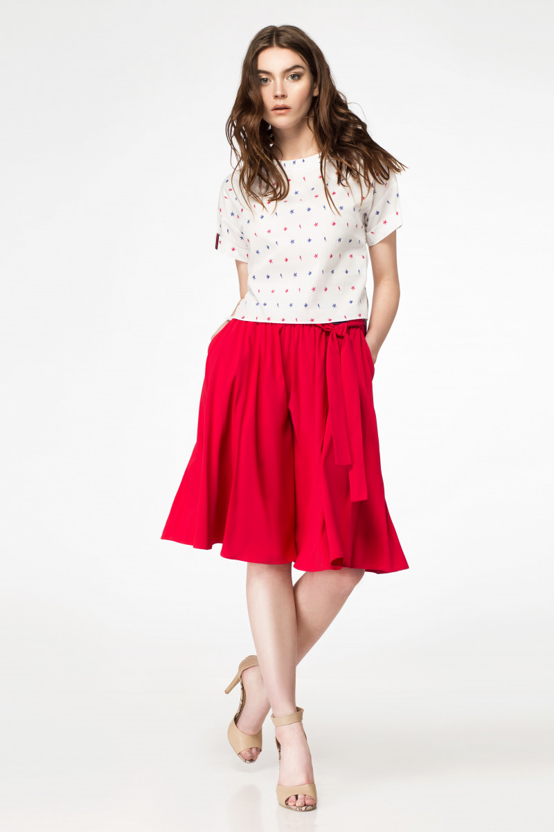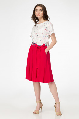 | 48 | Блузка: Длина изделия - 55,5см, Длина рукава - 10см, Ширина плеча - 14,5см, Ширина по груди - 51,5см, Ширина по низу - 51,5см, Ширина рукава - 19,5см; Юбка: Длина изделия - 56,5см, Ширина по талии - 37см; |