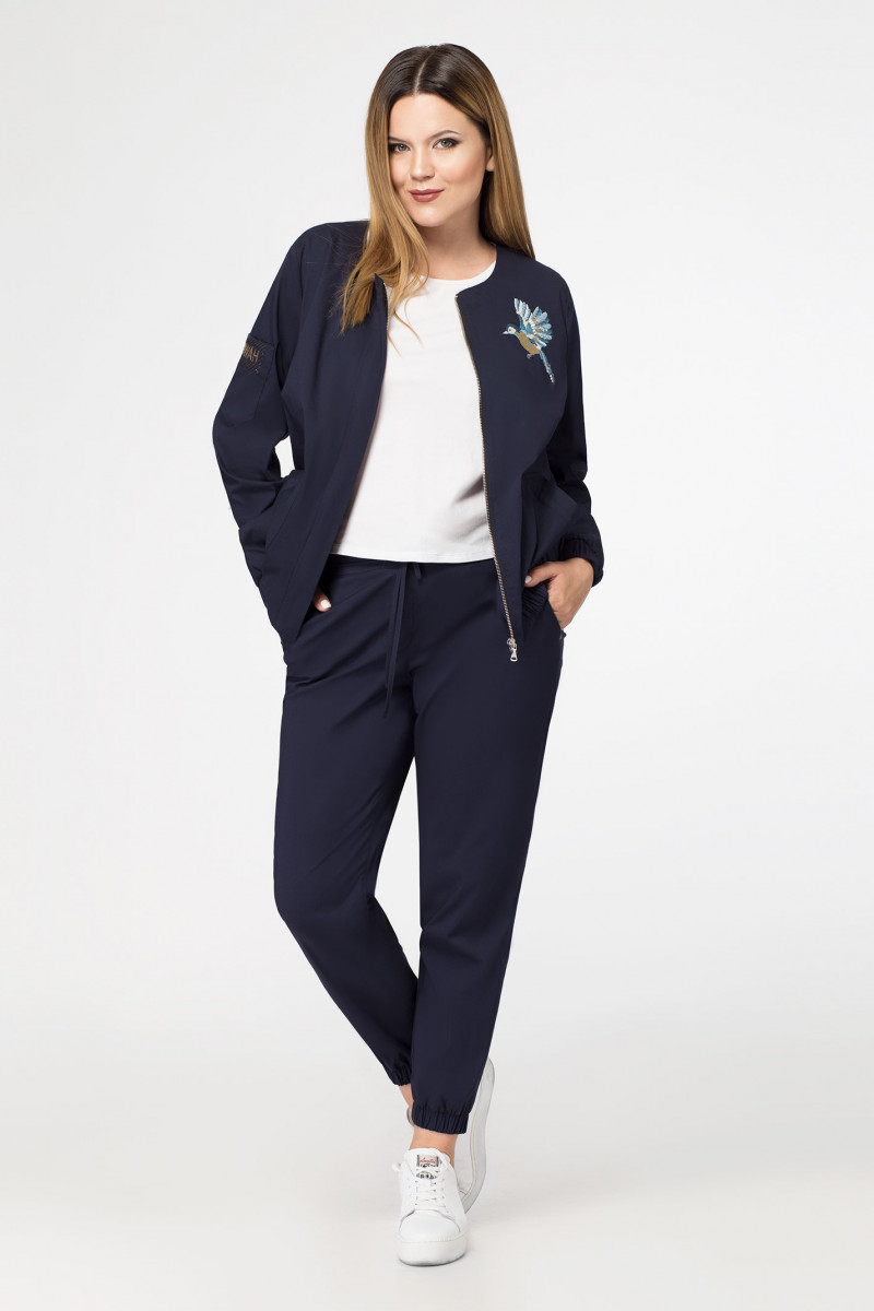 Молодежный жакет выполнен в спортивном стиле из хлопковой ткани. Отлично подойдет для летнего отдыха. Жакет с центральной застежкой на молнию, по низу рукавов и изделия притачная манжета на резинке. По переду карманы. Рукава втачные длинные. По спинке кокетка. Жакет дополнен ярким декором с умеренным блеском, который создает изящество данному жакету. Отличный вариант для лета.