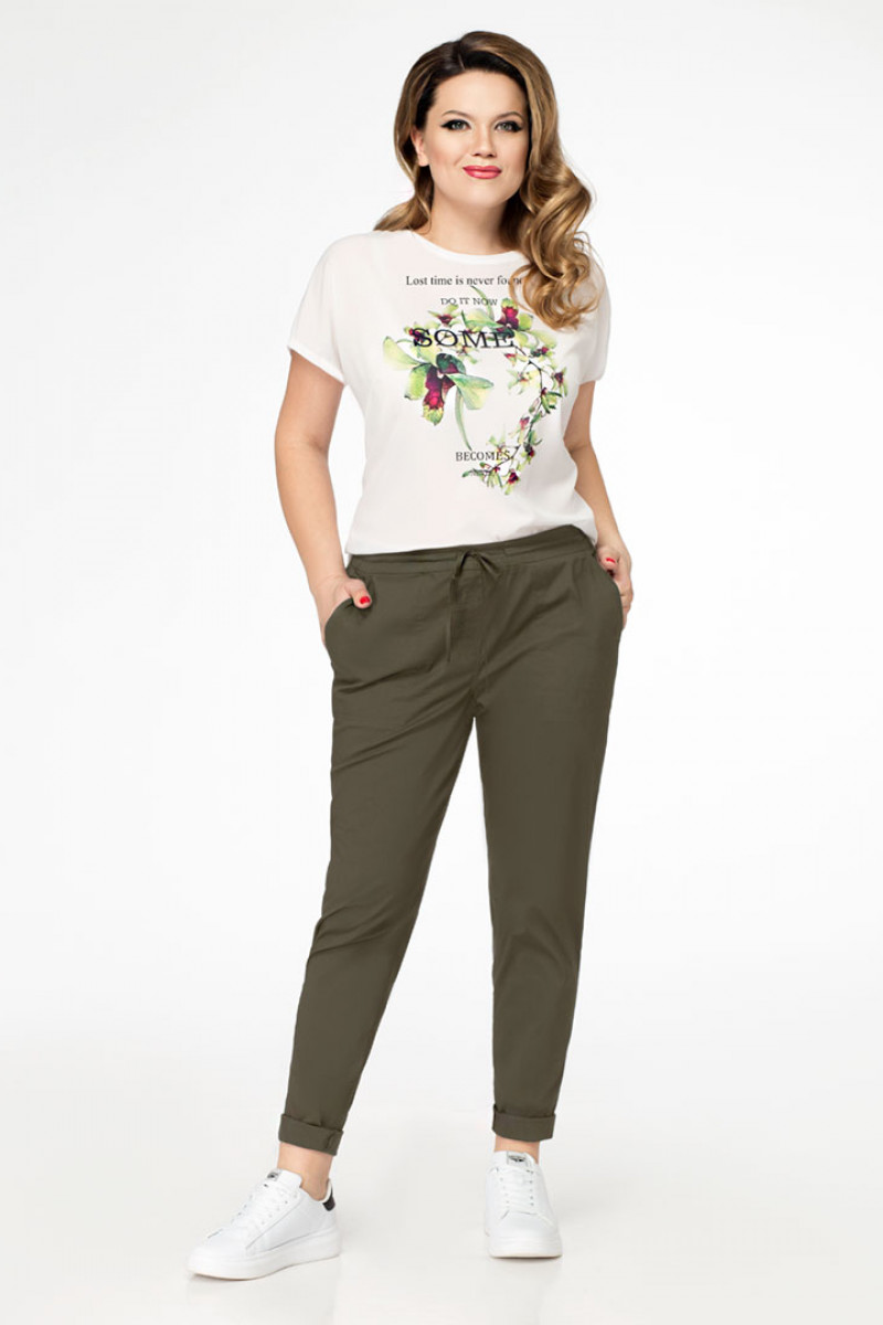 Женские брюки больших размеров станут вашим верным спутником на прогулке, в офисе, на вечеринке. Они хорошо сочетаются с футболками, блузами, рубашками, дарят свободу движений, выглядят стильно и модно. Брюки на резинке отличаются удобной посадкой. Дополнительно фиксируются шнурком, который позволяет регулировать объем в талии. Снизу повседневные укороченные брюки имеют отворот, слегка приоткрываю лодыжки. Будут уместно смотреться с кроссовками, кедами, босоножками, туфлями на танкетке. Вы можете купить зауженные брюки женские и пополнить свой летний гардероб универсальным изделием.
