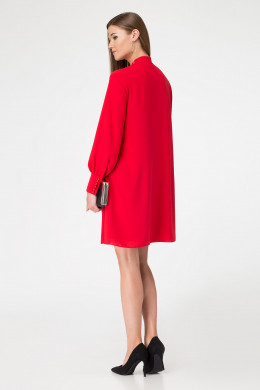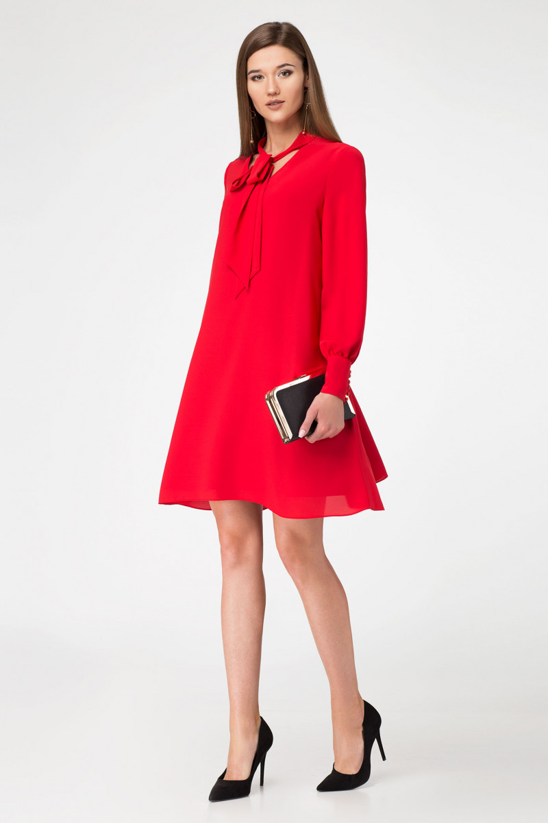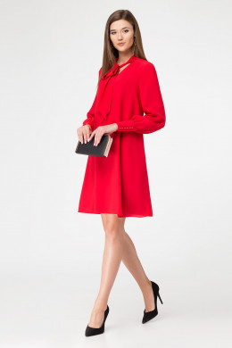 Нарядное платье из шифоновой ткани дополненное декоративным бантом по горловине. Платье расширенного силуэта, с длинными рукавами. Низ рукавов на широкой притачной манжете с декоративными петлями и пуговицами. Отличный вариант для торжественных случаев.