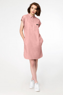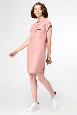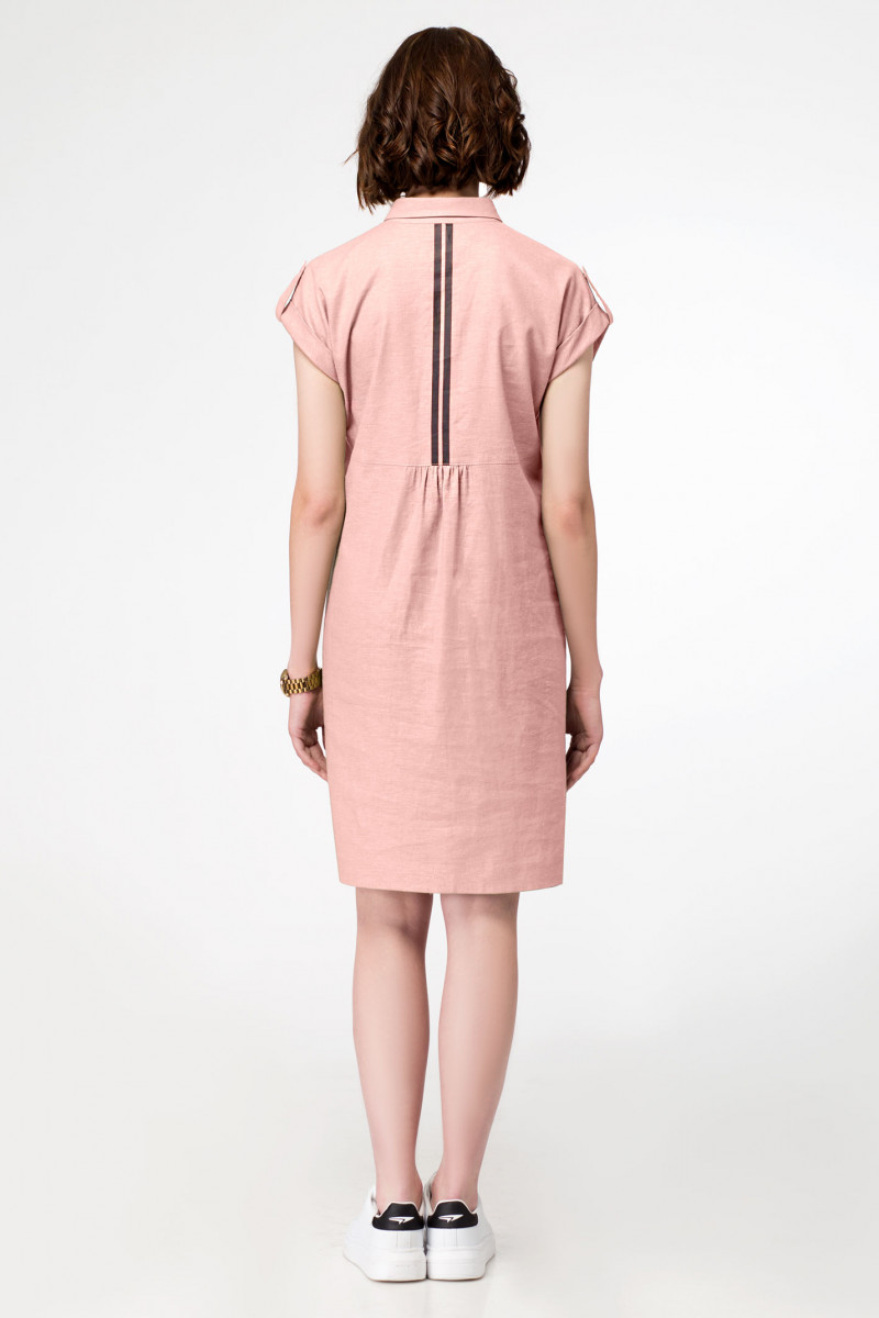 Молодежное платье из натуральной ткани с эффектным рисунком на кармане и на спинке. Платье свободного кроя, с воротником, с застежкой на кнопки по переду, длиной до коленей, спинка чуть удлиненная.В боковых швах и на груди карманы. Легкое летнее платье отличный вариант для отдыха.