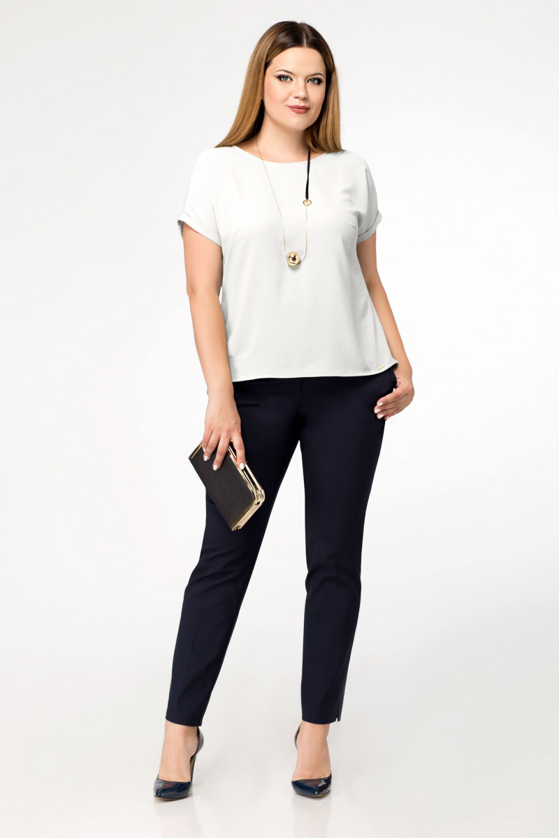 Стильная лаконичная блузка, которая отлично сочетается с различными вещами вашего гардероба. Блузка полуприлегающего силуэта, спинка чуть удлиненная, рукава цельнокроеные с отложными манжетами. По переду нагрудные вытачки.
