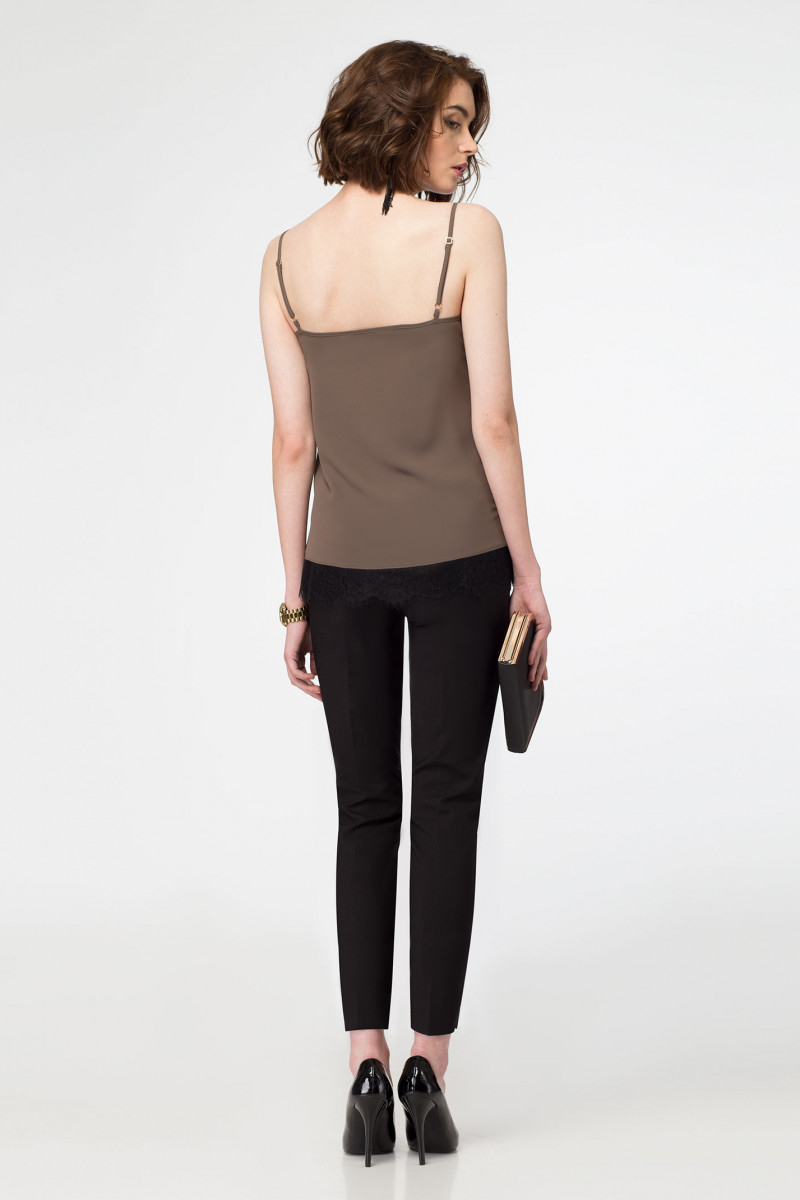 Топ из легкой ткани на тонких бретелях с изящным французским кружевом.Топ свободного кроя. По переду вытачки, бретели регулируются, что обеспечивает отличную посадку изделия по фигуре. Отличный вариант с классическим жакетом в офис или с любимыми джинсами на вечеринку.