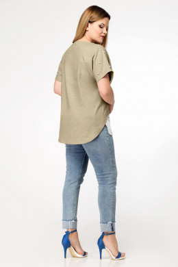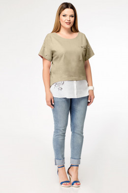 Стильная молодежная блузка из льняной ткани. Блузка полуприлегающего силуэта, с нагрудными вытачками по переду, с нагрудным карманом на левой части, с имитацией двухслойности. Блузка дополнена шрифтовым рисунком по карману и по низу изделия, а также изящными жемчужными бусинками по рукаву. Отлично сочетается как с любимыми джинсами, так и с классическими брюками.