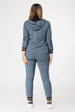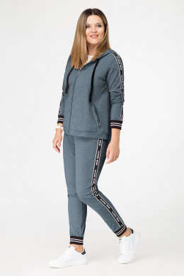 Стильный спортивный костюм выполнен из хлопкового трикотажного полотна и дополнен декоративной тесьмой и довязами, которые сейчас на пике моды. Джемпер с капюшоном, с центральной застежкой на молнию, с карманами на молнию. Низ джемпера на притачной манжете. По рукавам настрочена тесьма. Брюки на резинке, с карманами, по бокам имеются лампасы из декоративной тесьмы. По низу манжеты. Такой модный спортивный костюм отличный вариант для активного отдыха.