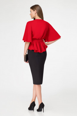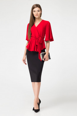 Легкая струящиеся блузка из шифоновой ткани. Блузка отрезная по талии на резинки, нижняя часть разведенная, по талии съёмный пояс, который завязывается в бант, дополняя модель. Блузка с глубоким V - образным вырезом горловины, с эффектными широкими рукавами. Такая блузка отлично сочетается как с классическими брюками, так и с классической юбкой, создавая нарядный женственный образ.