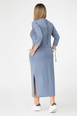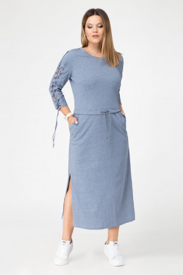 Модное стильное платье из хлопковой ткани. Платье полуприлегающего силуэта, отрезное по талии на кулисе. Платье с круглым вырезом горловины, с рукавами длиной три четверти, с разрезами по бокам. По переду имеются нагрудные вытачки, которые обеспечивают отличную посадку по фигуре. От подреза по талии к боковым швам расположены карманы. Платье дополнено оригинальными модными шнуровками по центральной части рукава и по спинки. Такое платье можно смело сочетать как с кроссовками, так и с классическими туфлями.