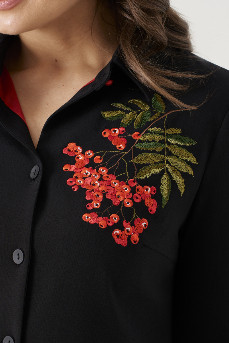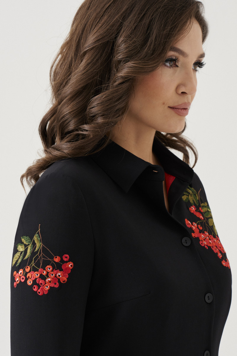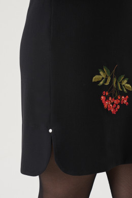 Лаконичное платье женское деловое соответствует требованиям дресс-кода в офисах. По низу оно имеет закругленные разрезы, а в боковых швах - прорезные карманы. Платье женское нарядное можно надеть для особого случая. Оно декорировано оригинальной дизайнерской вышивкой с гроздьями осенней рябины. Вы можете купить платье женское повседневное офисное с доставкой."