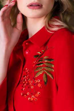 Лаконичное платье женское деловое соответствует требованиям дресс-кода в офисах. По низу оно имеет закругленные разрезы, а в боковых швах - прорезные карманы. Платье женское нарядное можно надеть для особого случая. Оно декорировано оригинальной дизайнерской вышивкой с гроздьями осенней рябины. Вы можете купить платье женское повседневное офисное с доставкой."