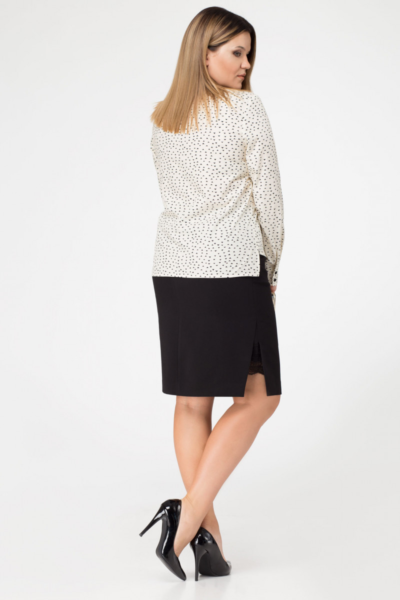 Блузка женская делового стиля из хлопковай немного стрейчевой ткани изумительного качества с абстрактным геометрическим рисунком. Блузка создана для деловой и уверенной в себе женщины,которая хочет выглядеть всегда стильно , свежо и при этом чувствовать себя комфортно.Силуэт блузки прямой с неровной линией низа и разрезами по бокам.Рукав длинный с манжетом и двумя пуговицами.Застёжка спереди на планку с пуговицами. Изюминкой блузки является воротник фигурной формы,придающий блузке нарядность и изысканность.Идеальный вариант для офиса и на каждый день.