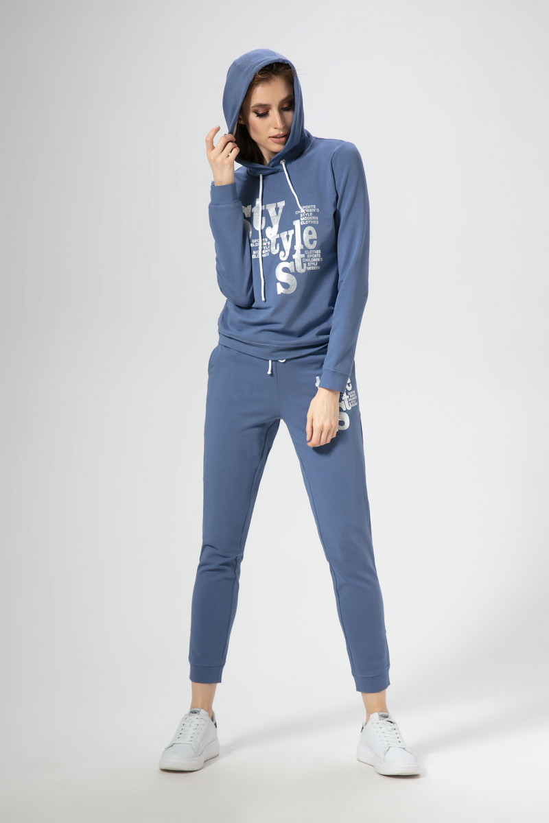 Стильный модный молодежный костюм из хлопкового трикотажного полотна, который отлично подойдет для активного отдыха. Брюки полуприлегающего силуэта с боковыми карманами по переду, пояс н резинке. По низу притачные манжеты. По переду нанесена печать. Джемпер полуприлегающего силуэта, с капюшоном. По переду нанесена печать. По низу рукавом и по низу изделия притачные манжеты.