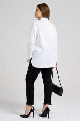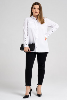 Стильная белая, хлопковая блузка, перестанет быть скучной, благодаря деталям отделки, которые дизайнеры подобрали наилучшим образом. Блузка полуприлегающего силуэта, с застежкой на петли пуговицы контрастного черного цвета, на деталях переда верхний карман, оригинальной формы, с закрепками контрастного черного цвета, на левой детали шрифтовая печать. Спинка прямая, с декоративной оригинальной печатью, придает блузки самодостаточность. В этой блузке, вы будите притягивать взгляды окружающих.