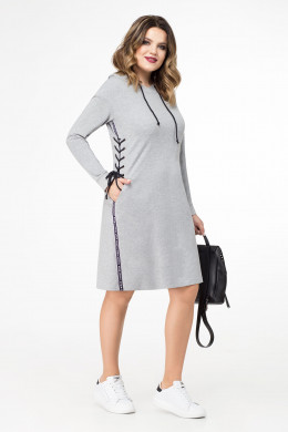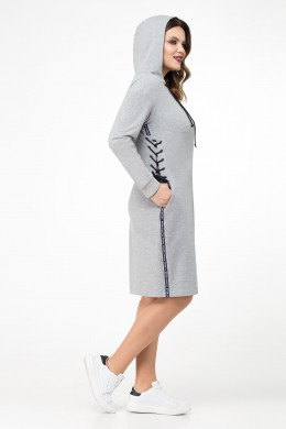 Модное повседневное платье в спортивном стиле из мягкого и уютного хлопкового трикотажа будет прекрасным выбором для прогулки и на каждый день.Платье спорт-шик сочетает в себе мягкую женственность и романтичность и такие присущие спортивной одежде качества,как комфорт , эластичность,креативный крой.Платье с капюшоном мягкой формы,затягивающимся на шнур.Рукав длинный,расширенный,стянут по низу на эластичный манжет. По бокам платье декорировано отделочной тесьмой и деталями со шнуровкой,имитирующими корсет. Длина платья до колена.
