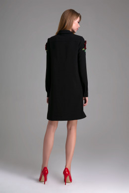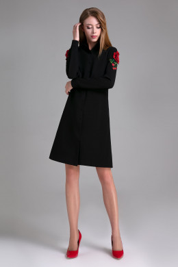 Нарядное платье расширенного силуэта с изящной дизайнерской вышивкой на рукавах. Платье расширенного силуэта с центральной сквозной застежкой на петли и пуговицы. Рукава длинные с притачными манжетами по низу. По окату рукавов имеется дизайнерская вышивка с объёмными вышитыми цветами. По переду нагрудные вытачки, которые обеспечивают посадку изделия по фигуре. По переду имеются подрезы по бокам, в подрезах расположены карманы. Изящное платье для любого светского мероприятия.