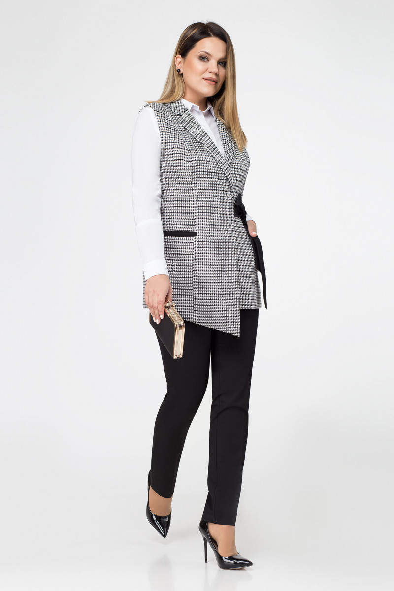 | 46 | Жилет: Длина изделия - 71,5см, Ширина плеча - 11,5см, Ширина по бедрам - 53см, Ширина по груди - 48,5см; Брюки: Высота посадки - 24см, Длина брюк с поясом - 102см, Длина по внутреннему шву - 79,5см, Ширина брючин сверху - 62см, Обхват брюк по низу - 34см, Ширина по бедрам - 49,5см, Ширина по талии - 37см; |