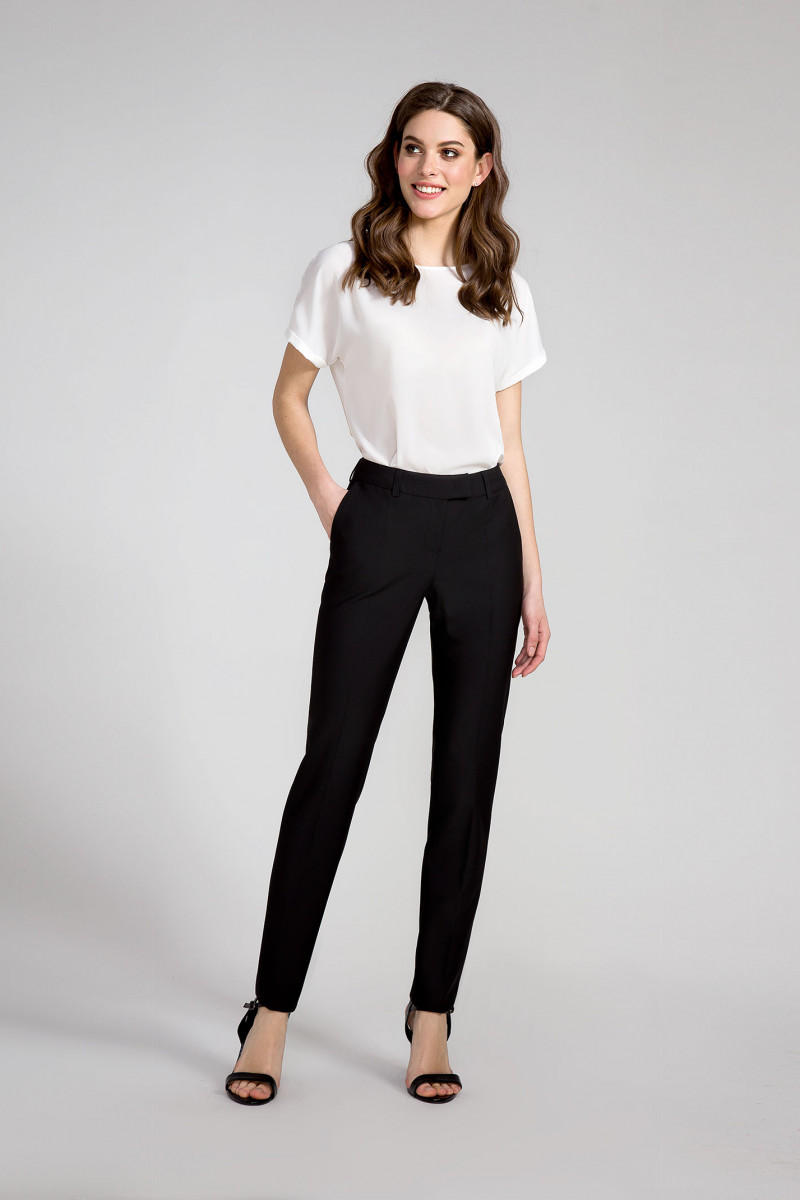 | 46 | Брюки: Высота посадки - 23,5см, Длина брюк с поясом - 97см, Длина по внутреннему шву - 74,5см, Ширина брючин сверху - 61,5см, Обхват брюк по низу - 34см, Ширина по бедрам - 50см, Ширина по талии - 38см; |