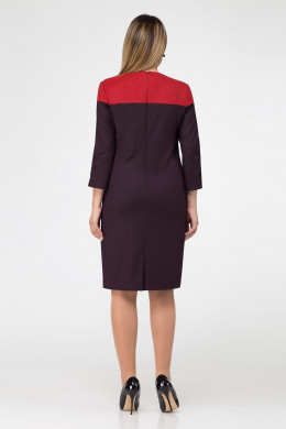 Платье женское строгое и роскошное одновременно.Мягкий, эластичный, фактурный текстиль на основе вискозы облегает силуэт по лифу и образует округлую форму по рукаву за счёт бантовой складки снизу и по низу платья за счёт невыраженной сборки на резинку .В платье гармонично сочетаются два цвета-компаньона.Ниже талии выполнен подрез,в который оформлен верхний срез юбки с двумя односторонними складками и карманами по бокам.Вырез горловины круглый,застёжка на потайную молнию в среднем шве спинки.