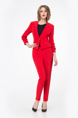 Стильный лаконичный жакет с застежкой на одну пуговицу. Жакет полуприлегающего силуэта, с V-образным вырезом горловины. По переду и по спинки имеются вытачки и рельефы, которые обеспечивают отличную посадку изделия по фигуре. Рукава втачные, длиной 3/4. Отличный вариант как для деловых встреч, так и для торжественных мероприятий.
