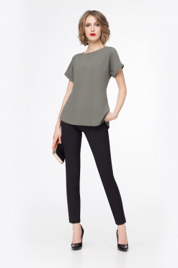 Классические брюки. По переду имеются карманы. На задних частях брюк имитация карманов. По боковым швам брюк небольшие разрезики. Застежка на тесьму-молнию и потайной крючок на поясе. По поясу имеются шлевки, для съёмного пояса. Такие брюки отлично сочетаются с различными жакетами и джемперами. Беспроигрышный вариант в гардеробе каждой женщины.