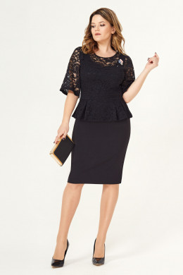 Нарядная блузка из кружевной ткани. Блузка полуприлегающего силуэта, отрезная по талии, с баской, с круглым вырезом горловины, с рукавами длиной до локтя. Застежка на потайную молнию в боковом шве. По переду и по спинки имеются вытачки, которые обеспечивают отличную посадку изделия по фигуре. Нижняя часть блузки, баска, имеет небольшие складочки, которые придают легкость и романтичность данной модели. Блузка дополнена съёмной брошью.Такая блузка отлично сочетается как с классической юбкой или брюками, так и с романтической легкой юбкой, создавая нарядный образ.