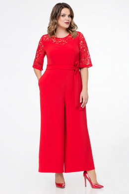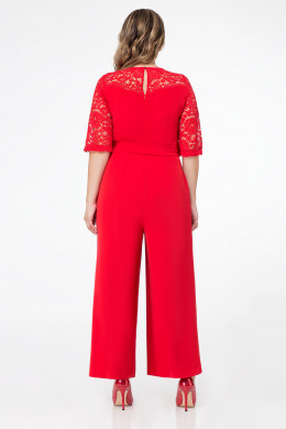Нарядный комбинезон выполнен из струящиеся ткани в сочетании с кружевом. Комбинезон отрезной по талии, с застежкой на петлю, пуговицу и потайную молнию по спинки. Комбинезон с круглым вырезом горловины, с кружевными расширенными рукавами длиной до локтя. Брюки комбинезона расширенные, имитируют юбку, где в целом комбинезон смотрится как нарядное длинное платье. В боковых швах карманы. Комбинезон дополнен поясом из основной ткани, который подчеркивает талию.Пропорции комбинезона выстроены так, что зрительно вытягивают ноги, подчеркивая талию.Комбинезон создан для девушек, которые знают, как выглядеть неотразимо и очень стильно.