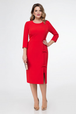 Нарядное платье из струящегося полотна. Платье полуприлегающего силуэта, длиной чуть ниже коленей, с декоративным элементом слева по переду. Платье отрезное по талии, с застежкой на потайную тесьму-молнию по спинки. Рукава втачные, длиной три четверти. Локтевой шов заканчивается шлицей с петлей и пуговицей. По переду рельефные швы, по спинки вытачки, которые обеспечивают отличную посадку по фигуре. Такое платье отлично подойдет как для светских мероприятий, так и для торжественных случаев.
