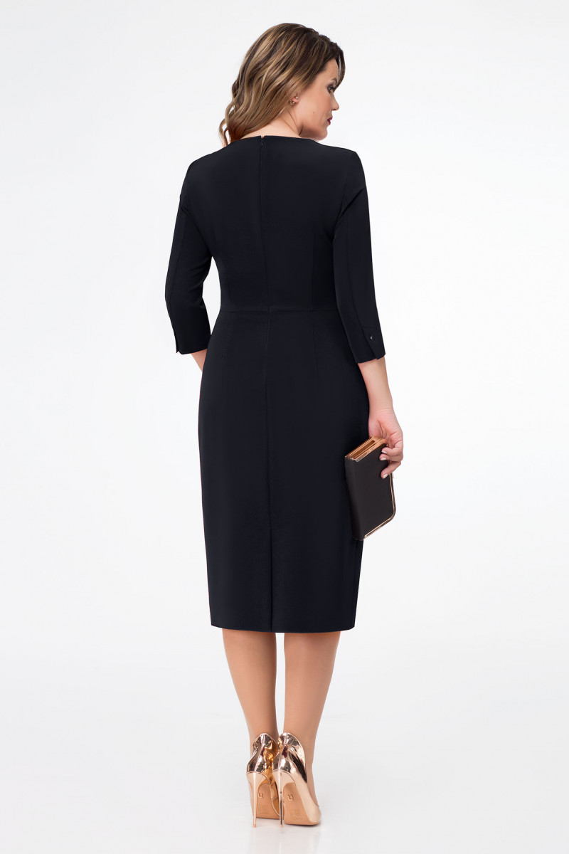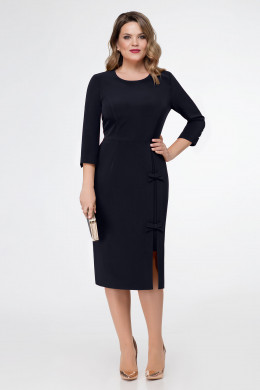 Нарядное платье из струящегося полотна. Платье полуприлегающего силуэта, длиной чуть ниже коленей, с декоративным элементом слева по переду. Платье отрезное по талии, с застежкой на потайную тесьму-молнию по спинки. Рукава втачные, длиной три четверти. Локтевой шов заканчивается шлицей с петлей и пуговицей. По переду рельефные швы, по спинки вытачки, которые обеспечивают отличную посадку по фигуре. Такое платье отлично подойдет как для светских мероприятий, так и для торжественных случаев.