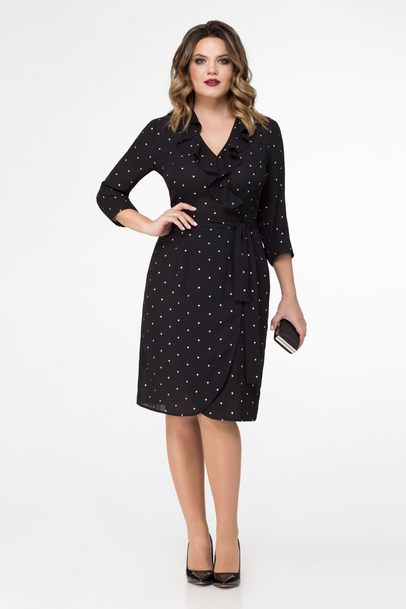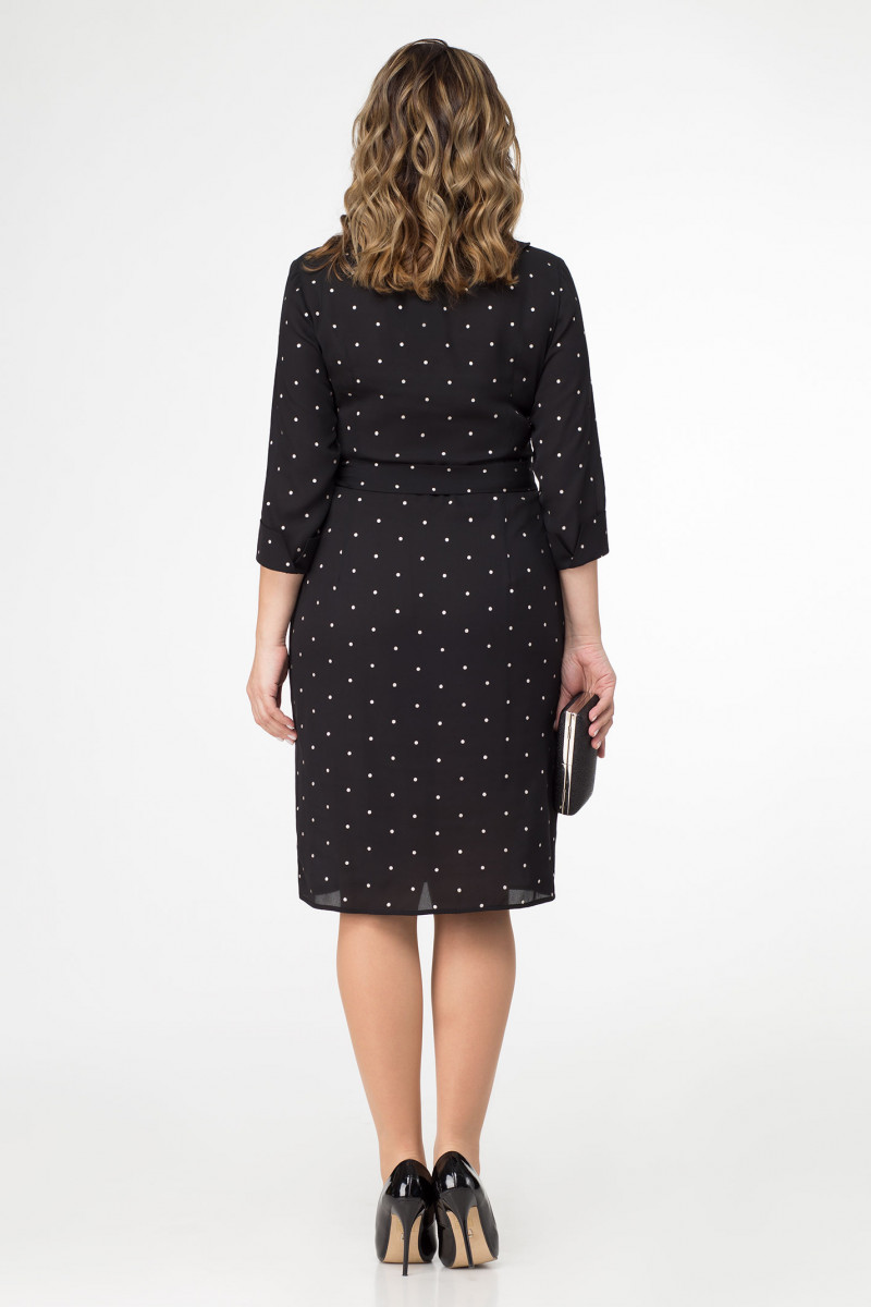 Эленгантное платье из шифона, рисунок в романтический серебристый горошек. Платье прилегающего силуэта, отризное по линии талии, в боковом шве молния, с V-образным вырезом и воланом по переду, с рельефными швами, от линии талии до низа асимметричный запах, по линии талии пояс из основной ткани. Спинка с талиевыми вытачками. Рукава 3/4 с притачными манжетами. Отличный вариант для выхода в свет и для будней.
