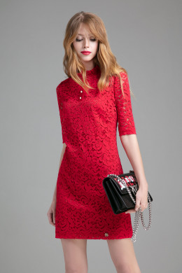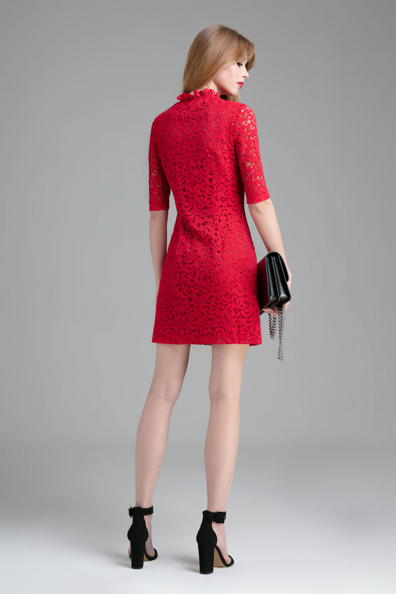 Нарядно- романтичное платье из кружева. Платье полуприлегающего силуэта слегка расширенное к низу, по горловине романтичная рюша, от горловины планка на петли пуговицы. Спинка с талиевыми вытачками. Рукава втачные до локтя. Шикарный образ, как по случаю так и без него.