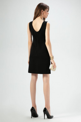 Универсальное маленькое чёрное коктейльное платье из приятного к телу трикотажа ,с глубоким круглым вырезом по спинке выглядит очаровательно и просто незаменимо в гардеробе стильной девушки.Платье приталено при помощи нагрудных вытачек и среднего шва по спинке.