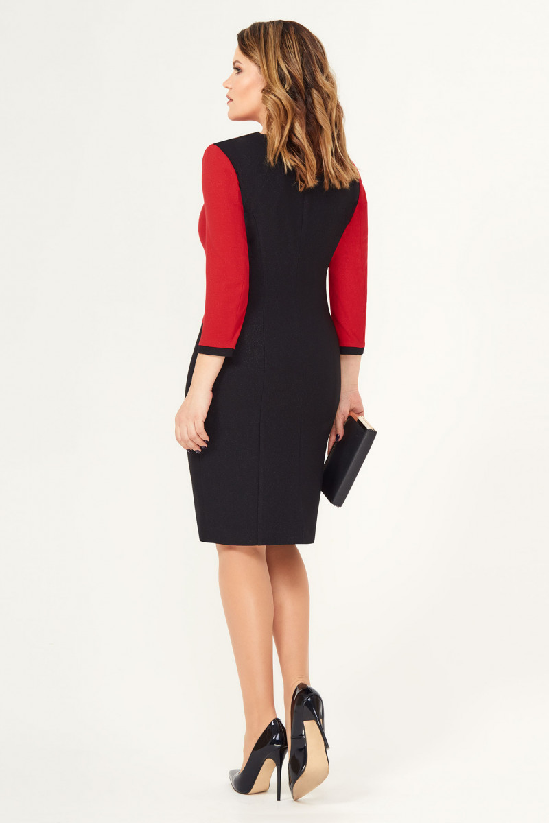Элегантное платье из мягкой,пластичной и немнущейся однотонной ткани ,декорированое изысканным кружевом и двумя декоративными пуговицами. Идеальный вариант для любого светского мероприятия,а также на каждый день для увереной в себе женщины,которая хочет выглядеть неотразимо и при этом чувствовать себя комфортно.Платье прилегающего силуэта.Вырез горловины круглый.Длина рукава 3/4. Застёжка сзади на потайную молнию.Платье выполнено на сочетании тканей двух цветов.Ассиметричные членения придают образу динамику и визуально стройнят женщину,помогая подчеркнуть достоинства и скрыть недостатки фигуры.