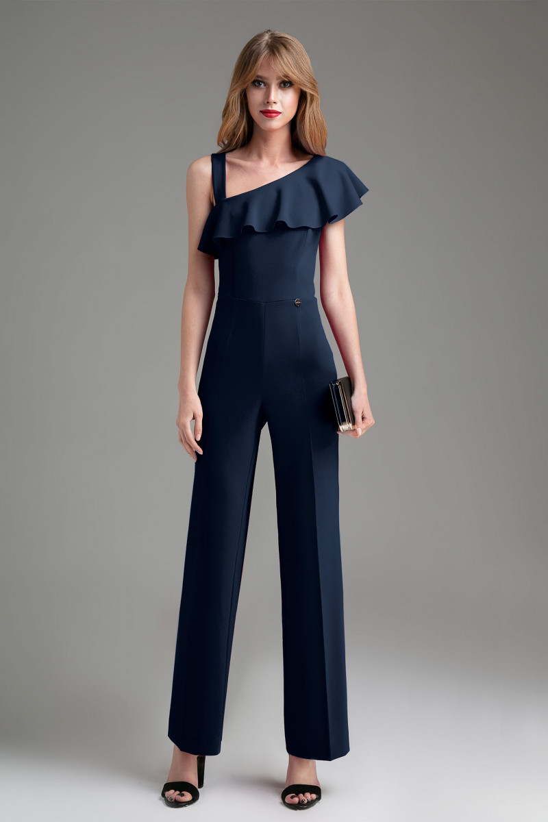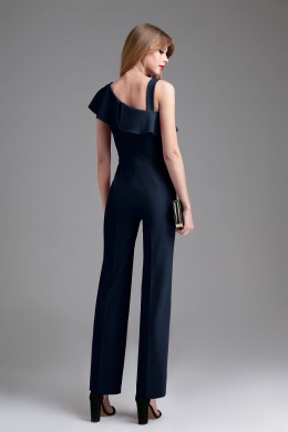 Стильный , романтичный комбинезон, полуприлегающего силуэта , лиф с рельефными швами , горловина асимметричной формы с рюшей , на правом плече бретель, брюки расширенные. Спинка с рельефными швами, в среднем шве молния, горловина асимметричной формы, по правому плечу бретель, брюки расширенные. Комбинезон хорош тем, что вписывается в дресс-код любого мероприятия, в нем можно появиться, как на корпоративе, так и на семейном торжестве.